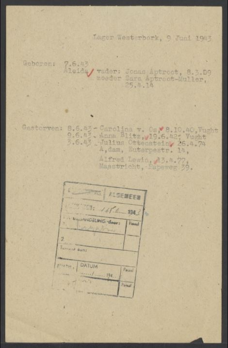 Op 7 juni 1943 werd in kamp Westerbork Aleida geboren, de tweede dochter van Jonas en Sara.