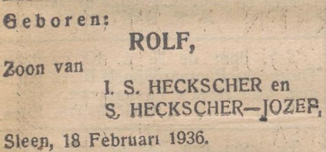 Izaak Salomon Heckscher was geboren in Sleen op 10 april 1904. Elsiena Geertina Jozep werd geboren in Onstwedde op 7 februari 1906.