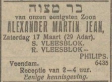 Vader en moeder Vleesblok, die met hun kinderen woonden aan de Boven Oosterdiep 37 in Veendam, hechtten veel waarde aan de Joodse tradities. Lex werd bar mitswah, en vader Simon was lid van het Joods armenbestuur in Veendam.