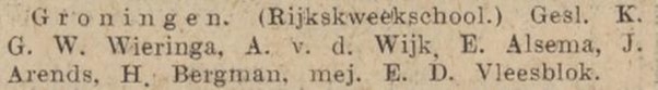 In november 1936 ging ze naar Westernieland voor een benoeming aan de openbare lagere school daar. Ze was toen op wachtgeld en woonde in Veendam.