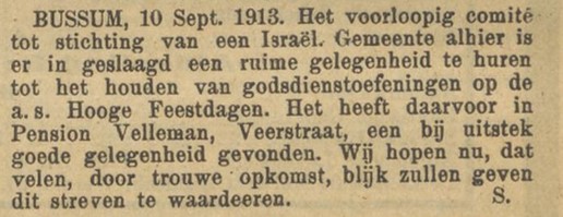 BINNENLAND.. "Nieuw Israelietisch weekblad". Amsterdam, 12-09-1913, p. 3.