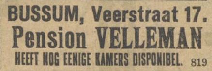 Omdat het gezin in Wieringen in een dienstwoning woonde, moest Elsje na het overlijden van Abraham dit huis verlaten met haar kinderen. Ze ging naar Amsterdam en betrok een woning aan de Nieuwe Kerkstraat. Om in haar levensonderhoud en dat van haar kinderen te kunnen voorzien, begon ze hier een pension. Na een aantal jaren verhuisde ze naar Bussum, waar ze Pension Velleman opende aan de Veerstraat 17, met kosjer eten voor de gasten. Er verschenen veel advertenties in de kranten waarin werd vermeld dat er kamers disponibel waren; er werden vergaderingen gehouden voor de Joodse Gemeente in Bussum, voor de plaatselijke afdeling van de SDAP, voor de vereniging tot afschaffing van alkoholische dranken, en vast nog voor veel meer lokale organisaties.