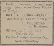 ● Leonard Velleman (Den Helder 30/9/1891 - Oakville Canada 31/7/1972) X Cato (Keetje) Peper (Amsterdam 16/9/1888 - Hilversum 5/6/1918)
