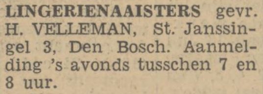 Velleman woonde in een groot huis aan de Sint Janssingel in ’s Hertogenbosch. In zijn woning had hij een schuilplaats aangelegd, waarin zich meerdere mensen tegelijk konden verbergen. Door het openen van een luik in de huiskamer kreeg men toegang tot de kelder waar de schuilplek was ingericht. Tapijt erover en niemand die er iets van merkte.