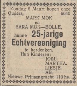 De vader van Liesje, Mark Mok, overleed op 5 mei 1937 in Amsterdam.