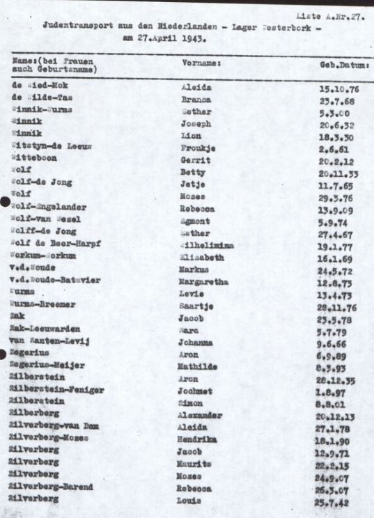 Fragment transportlijst 27 april 1943 (collectie HcKW)