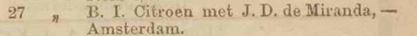 ● Judith Citroen (Antwerpen 2/9/1904 - Bozoum Centraal Afrikaanse Republiek 6/3/1930) X Maurits Rodrigues de Miranda (Amsterdam 17/5/1900 - Bozoum Centraal Afrikaanse Republiek 6/3/1930)