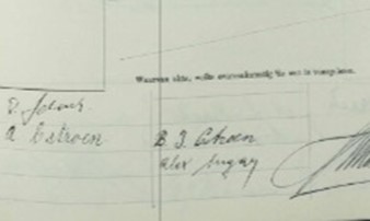 Handtekeningen onder huwelijksakte Béla en Angèle (noord-hollandsarchief.nl)