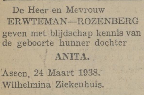 Familiebericht. "Provinciale Drentsche en Asser courant". Assen, 25-03-1938. Geraadpleegd op Delpher op 21-10-2025, https://resolver.kb.nl/resolve?urn=MMDA03:000115628:mpeg21:p004