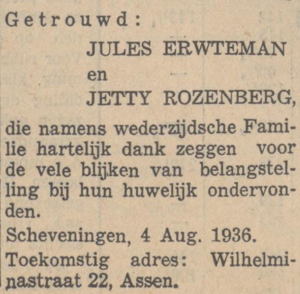 Familiebericht. "Provinciale Drentsche en Asser courant". Assen, 06-08-1936. Geraadpleegd op Delpher op 21-10-2025, https://resolver.kb.nl/resolve?urn=MMDA03:000114309:mpeg21:p004