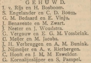 - Abraham Vlessing (Amsterdam 17/7/1916 - Auschwitz 28/2/1943) X Engelina Lynne Coopman (Amsterdam 18/10/1916 - New York 10/1/1981)