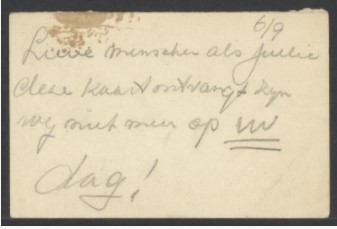 Lieve mensen, als jullie deze kaart ontvangen zijn wij niet meer op W. Dag!