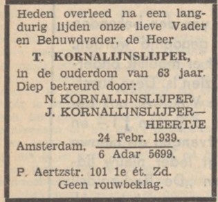 Familiebericht. "Utrechts volksblad : sociaal-democratisch dagblad". Amsterdam, 28-02-1939, p. 18. Geraadpleegd op Delpher op 16-09-2025, https://resolver.kb.nl/resolve?urn=ddd:010941480:mpeg21:p018