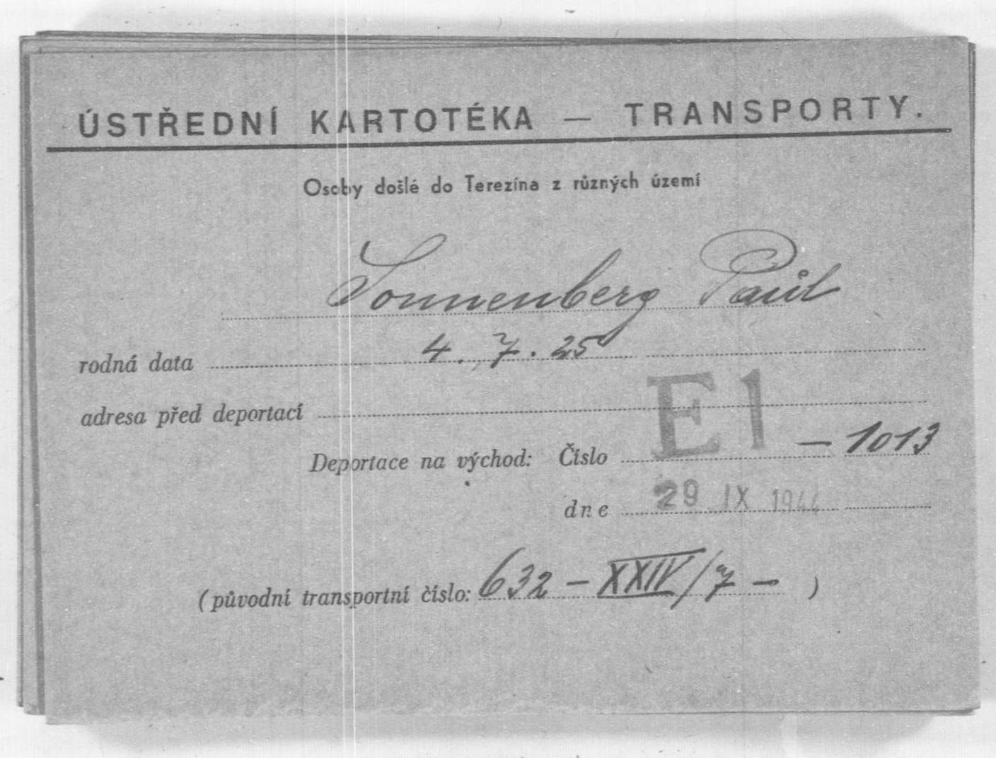 Paul Sonnenberg werd op 29 september 1944 vanuit Theresienstadt gedeporteerd.