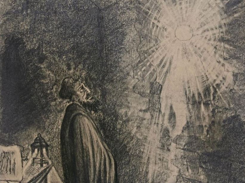 (Bron: Joods Museum Frankfurt, foto: Herbert Fischer. Kunstenares Rosy Lilienfeld https://sammlung.juedischesmuseum.de/objekt/die-verzweiflung-packt-den-baalschem-originaltitel/)